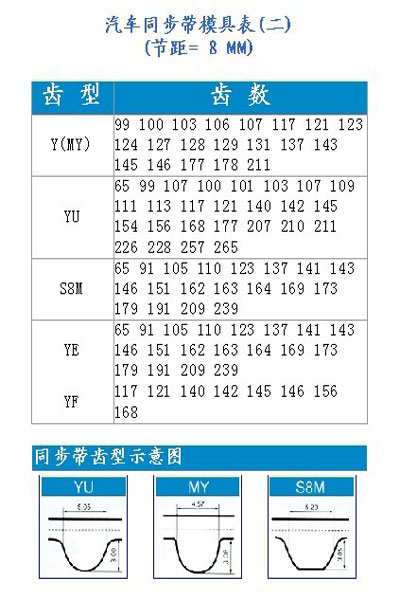 | 齒 型 | 節 距(mm) | 齒 高(mm) | 查 看 |